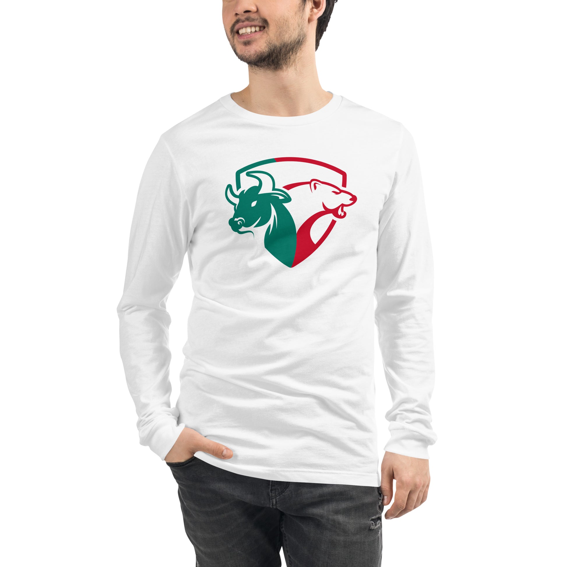 Traders bull vs bear- UNISEX LONG SLEEVE TEE WHITE